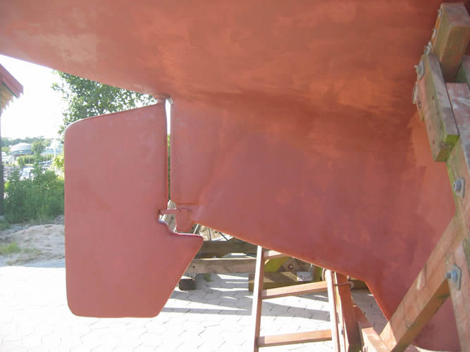 Hurley 22 - new skeg showing bolts |