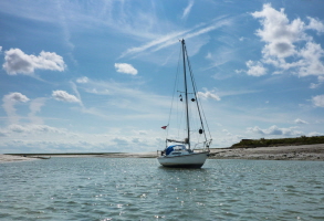 H22 Outlaw at anchor, (and aground at low water), in Paglesham