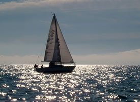Silhouette Mk 3 Golden Moon under sail, Southampton water"