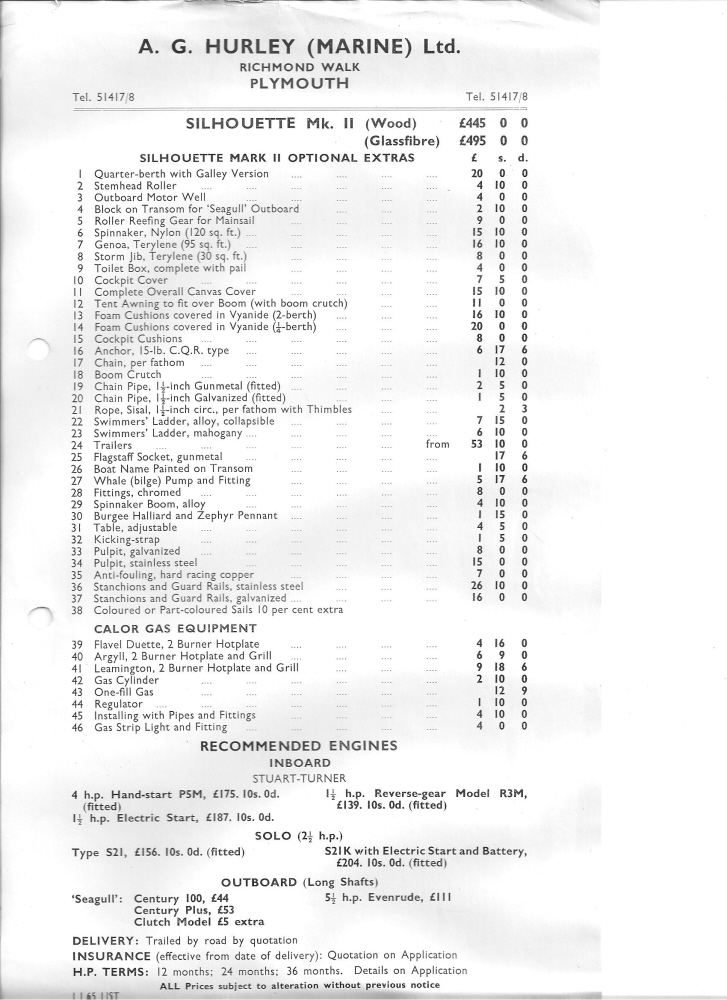 Silhouette Mk II price list |